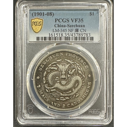 清代 四川省造 光緒元寶 庫平七錢二分 7錢2分 龍銀 大角龍 老包漿 PCGS VF/35 評級幣 鑑定幣[鴻兔小舖]