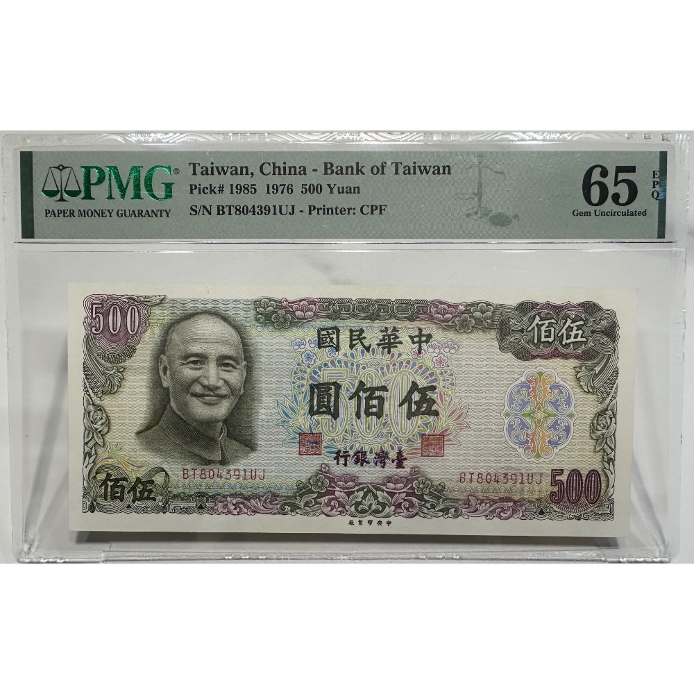 中華民國六十五年製版 民國65年 伍佰圓 五百元 500元 帶3有8 PMG 65EPQ 評級鈔 鑑定鈔[鴻兔小舖]