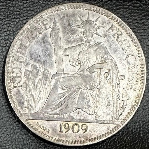 1909年 越南 坐洋 坐洋銀幣 法屬印支銀幣 貿易銀幣 貿易銀元 極美品 [鴻兔小舖]