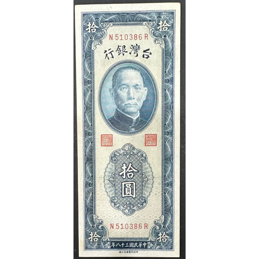 中華民國三十八年 民國38年 藍色 拾圓 十元 10元 帶3有8 中央印製廠台北廠 8-9成新[鴻兔小舖]