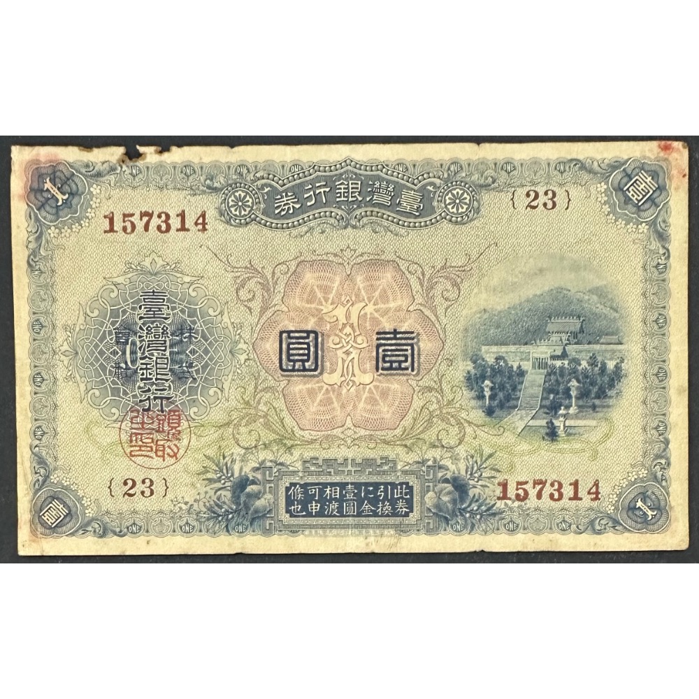 日治時期 日據時期 臺灣銀行券 台灣銀行 大正改造券 大正改造卷 壹圓 一元 1元 5成新[鴻兔小舖]