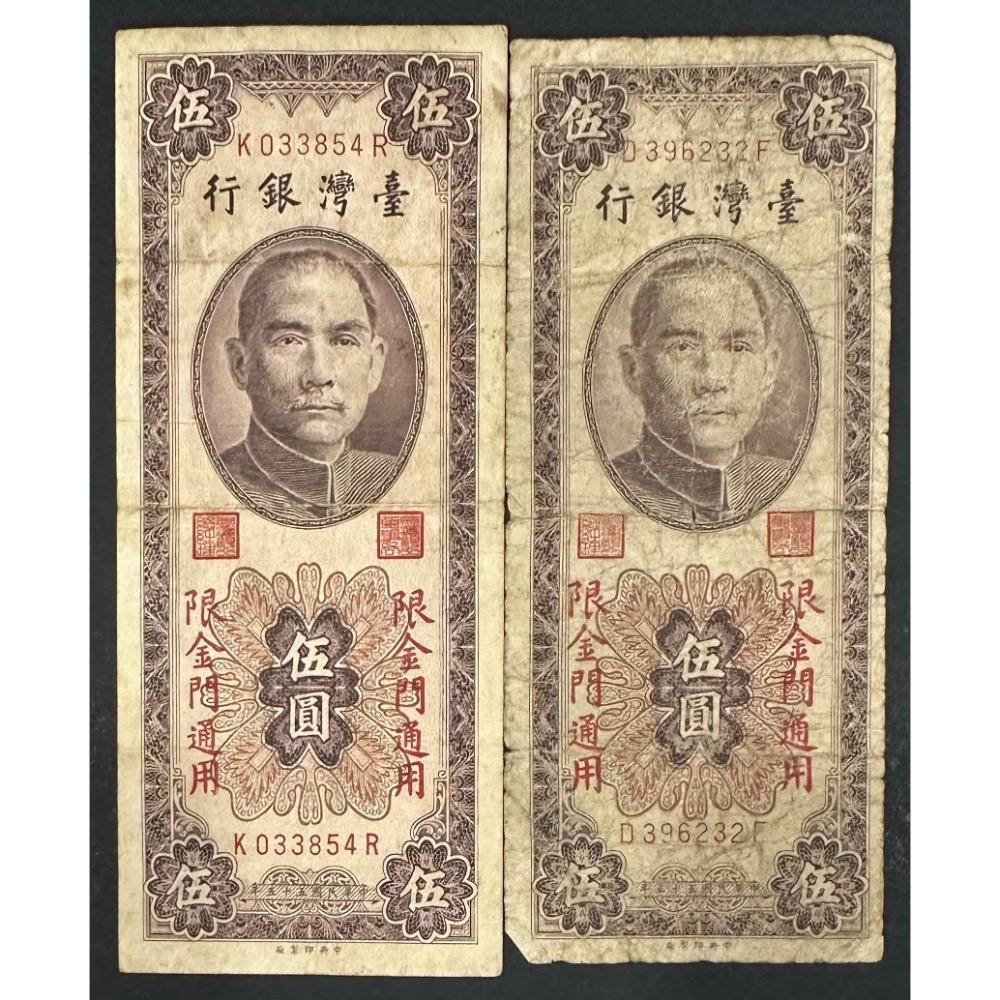 中華民國五十五年 民國55年 伍圓 五元 5元 限金門通用 帶圓3 兩張一標 (鴻兔小舖)