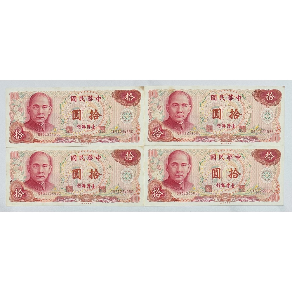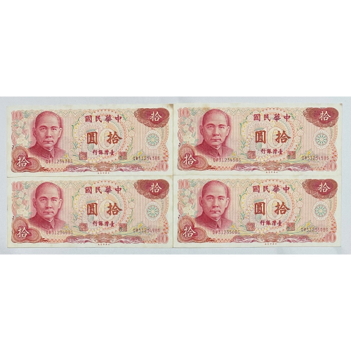 中華民國六十五年製版 民國65年 拾圓 十元 10元 四張一標(鴻兔小舖)