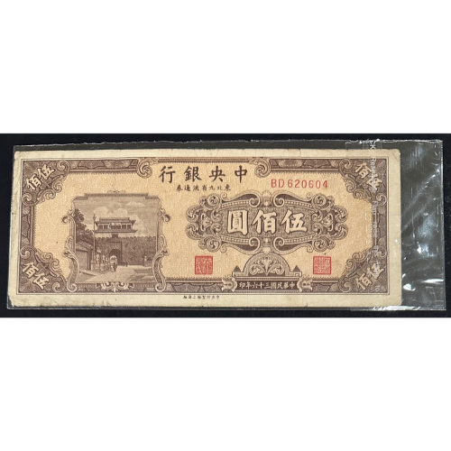 中華民國三十六年印 民國36年 中央銀行 東北九省流通券 伍佰圓 五百元 500元(鴻兔小舖)