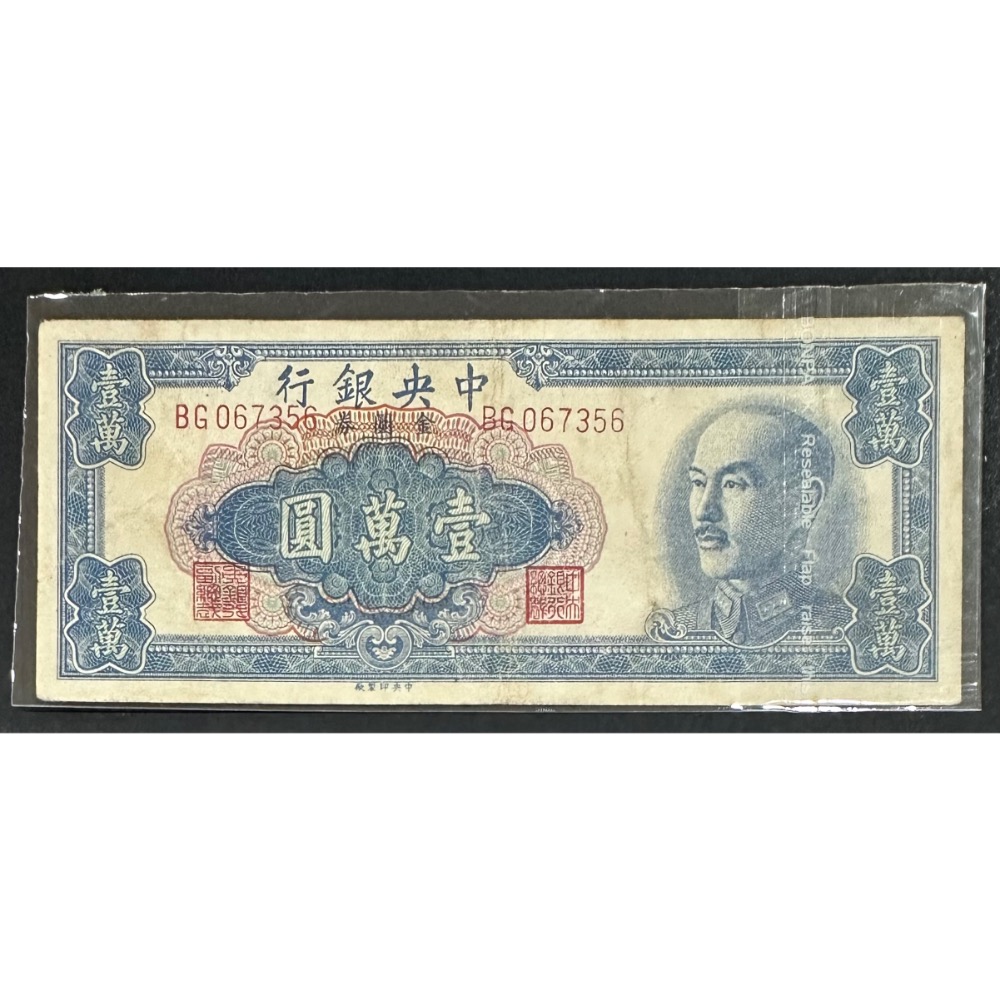 中華民國三十八年 民國38年 金圓券 壹萬圓 一萬元 1萬元 10000元 中央廠(鴻兔小舖)