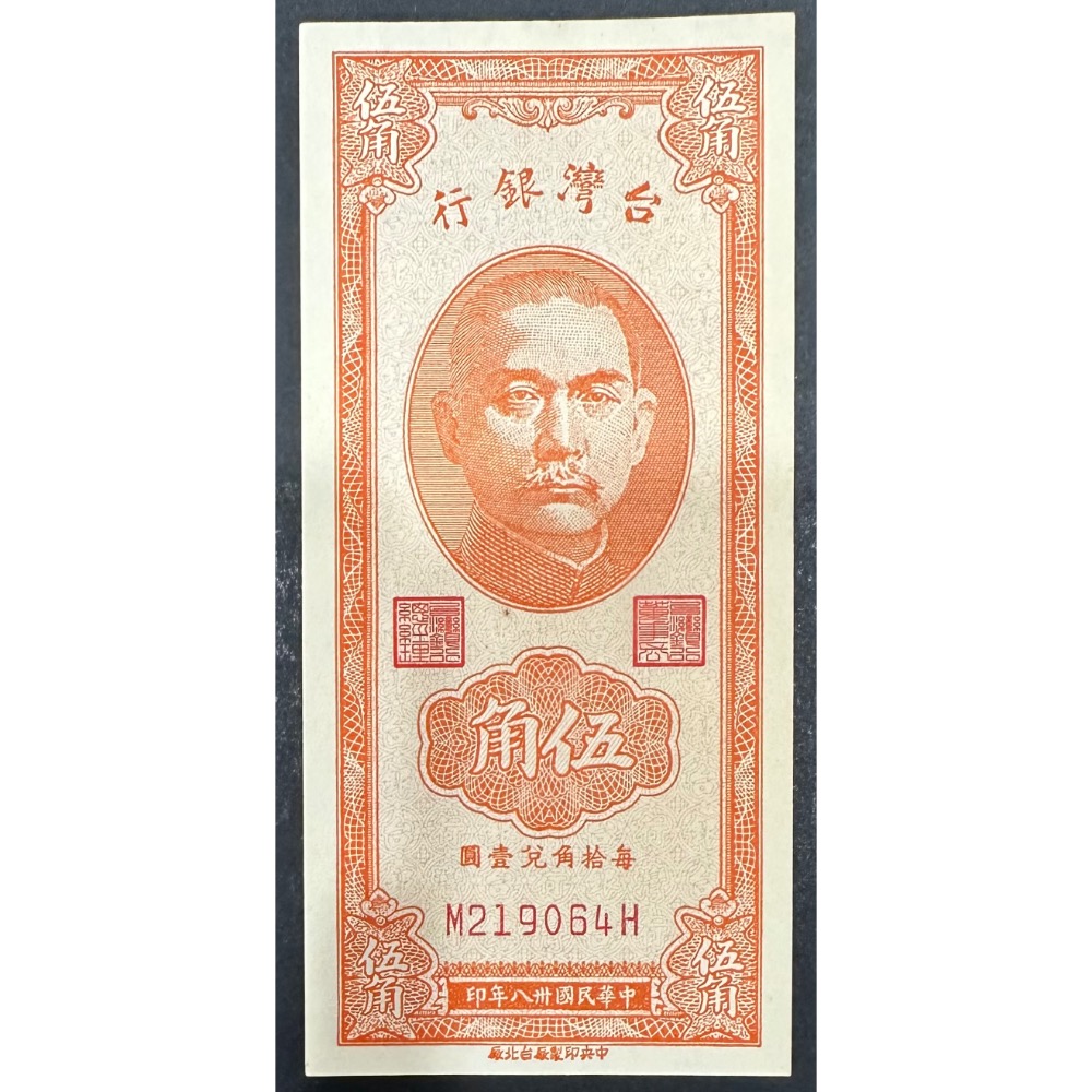 中華民國三十八年印 民國38年 伍角 五角 5角 紙鈔(鴻兔小舖)