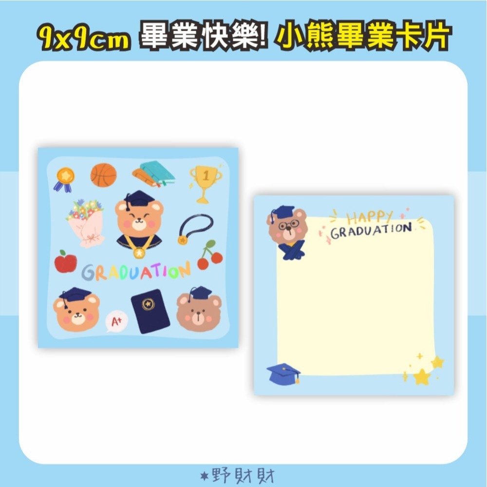 野財財⭐ 畢業快樂小熊卡片(雙面) 9公分(5張/入)畢業卡 畢業小卡 畢業賀卡 可愛畢業卡 棕熊畢業卡