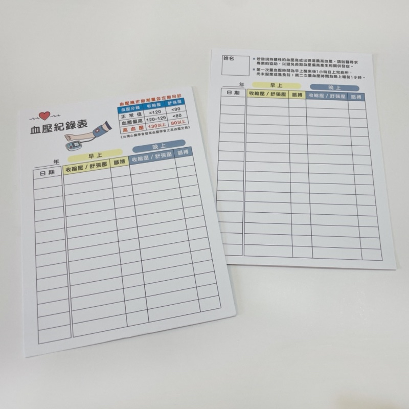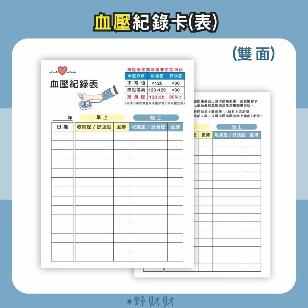 📌 【厚磅血壓記錄卡/表】(正反面書寫)