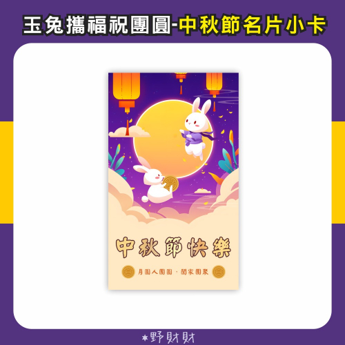 【中秋快樂小卡】月圓下的月兔們開心玩吃月餅 (名片款)
