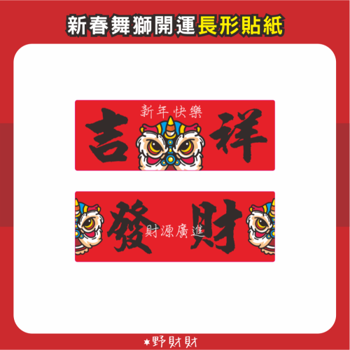 【新春舞獅開運長形貼紙】年貨包裝貼紙