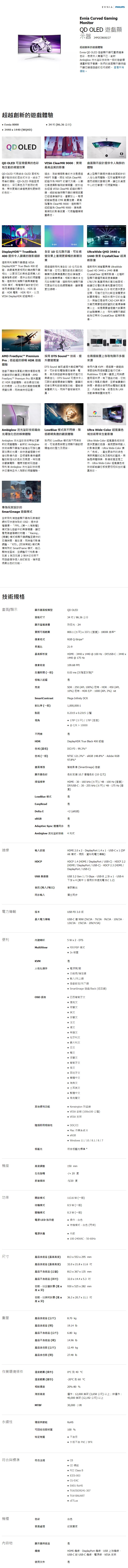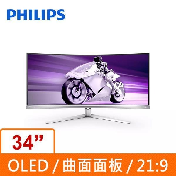 PHILIPS 飛利浦 34型 QLED 曲面電競螢幕顯示器(白) 34M2C8600