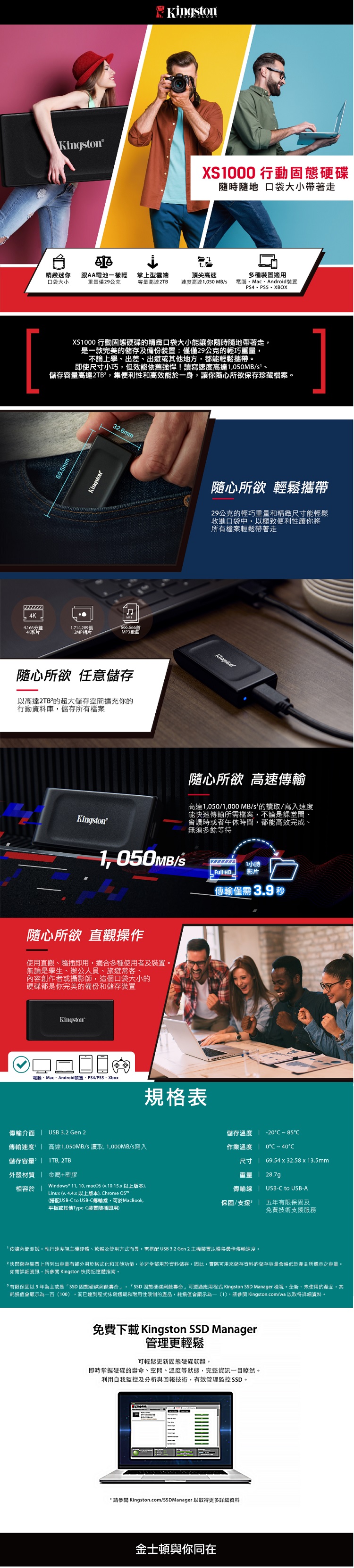 Kingston 金士頓 XS1000 2TB 外接式 行動固態硬碟 SXS1000/2000GA