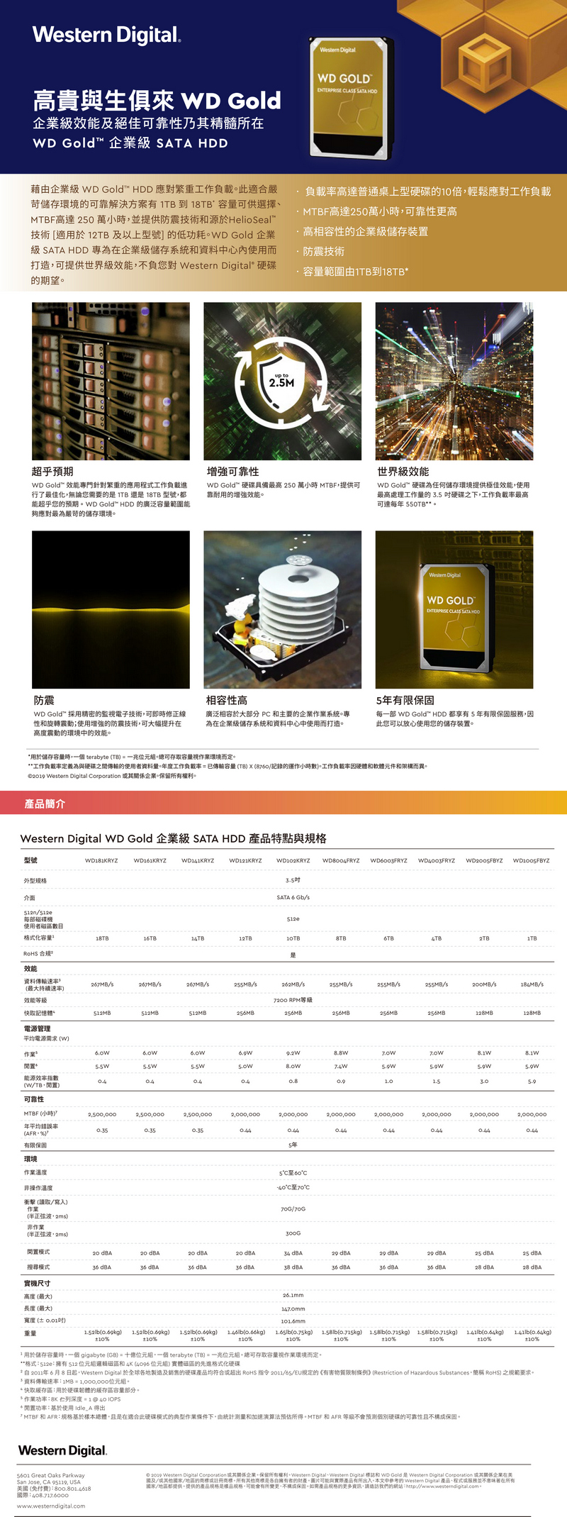WD 金標 2TB 3.5吋 SATA 企業級硬碟 WD2005FBYZ