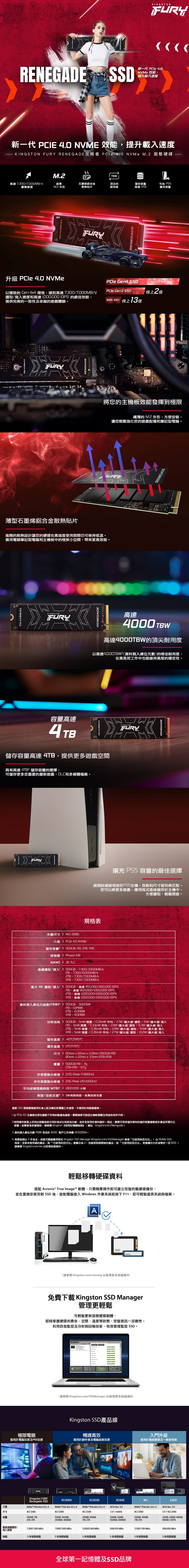 Kingston 金士頓 FURY Renegade SFYRD/4000G PCIe 4.0 NVMe M.2 SSD