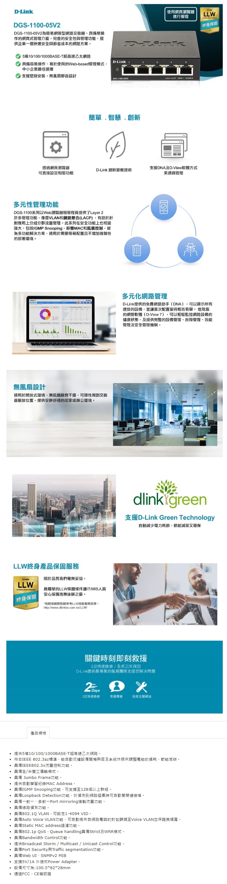 DGS-1100-05V2為簡易網管型網路交換器,具備易操作的網頁式管理介面,完善的安全與管理功能,提供企業一個快捷安全與節省成本的網路方案。