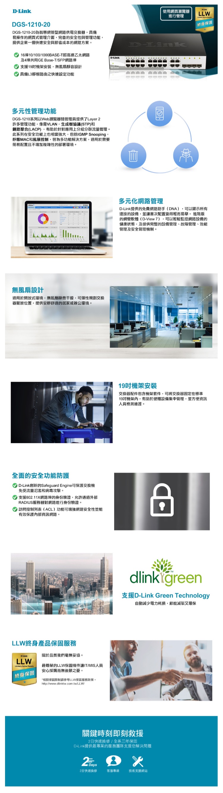 D-Link 友訊 DGS-1210-20 16+4埠 Layer2 Gigabit 智慧型網管交換器