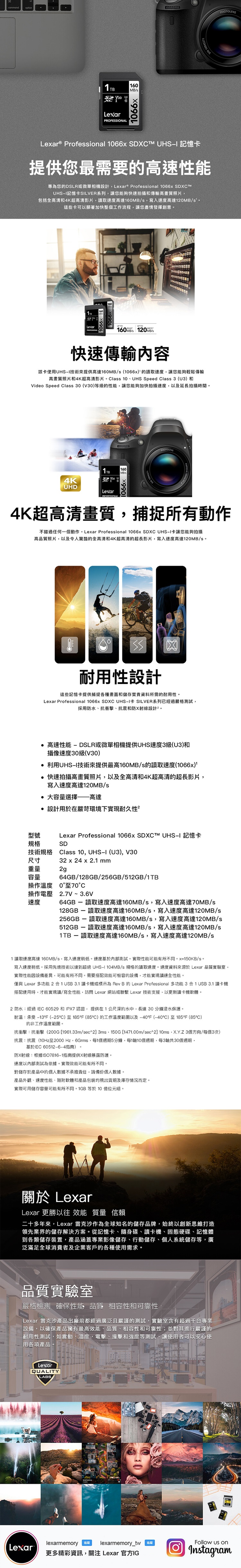 Lexar 雷克沙 Professional 1066x SDXC UHS-I 128G記憶卡