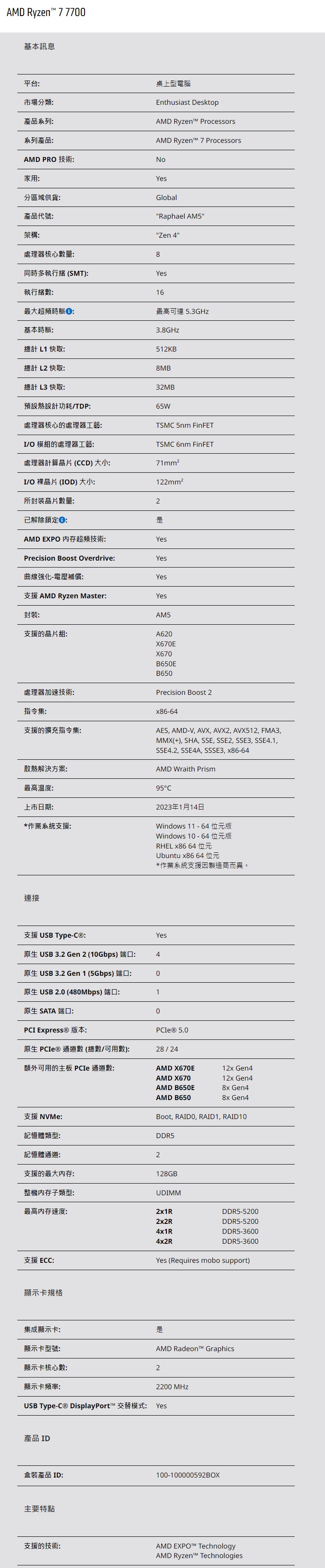 AMD Ryzen 7 7700 R7-7700 8核16緒 盒裝中央處理器 100-100000592BOX