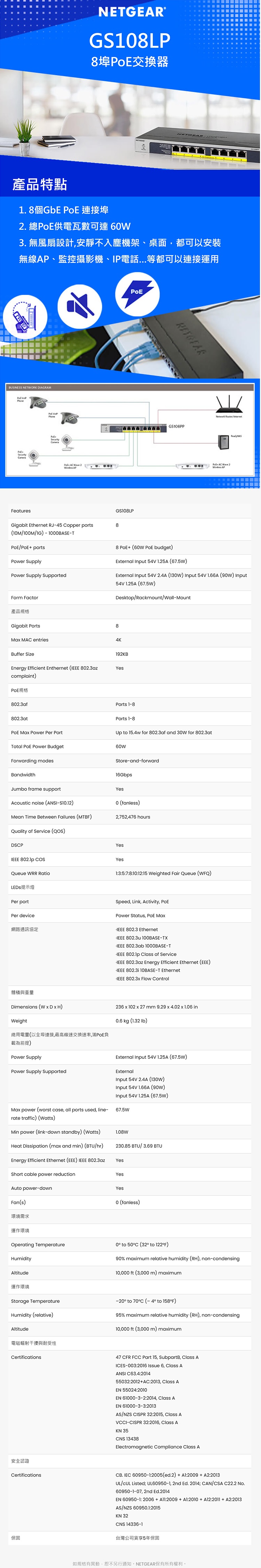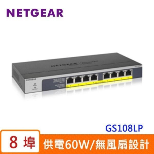 NETGEAR GS108LP 8埠Giga無網管型 PoE 交換器