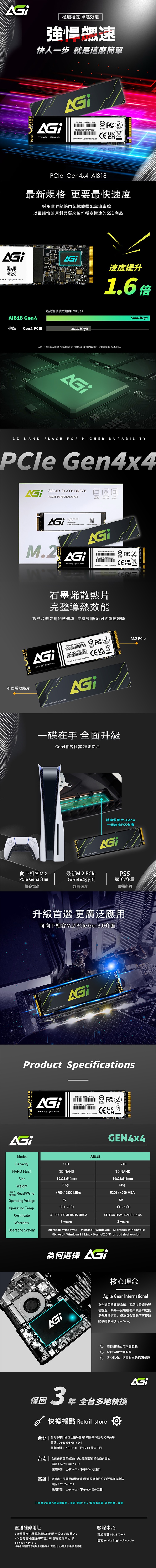 AGI 亞奇雷 AI818 1TB M.2 PCIe 4.0 SSD AGI1T0G43AI818