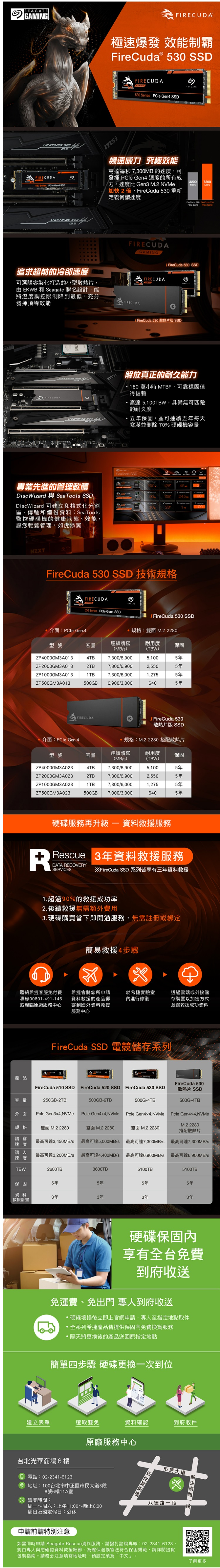 Seagate 希捷 FireCuda 火梭魚 530 SSD 1TB (ZP1000GM3A013)