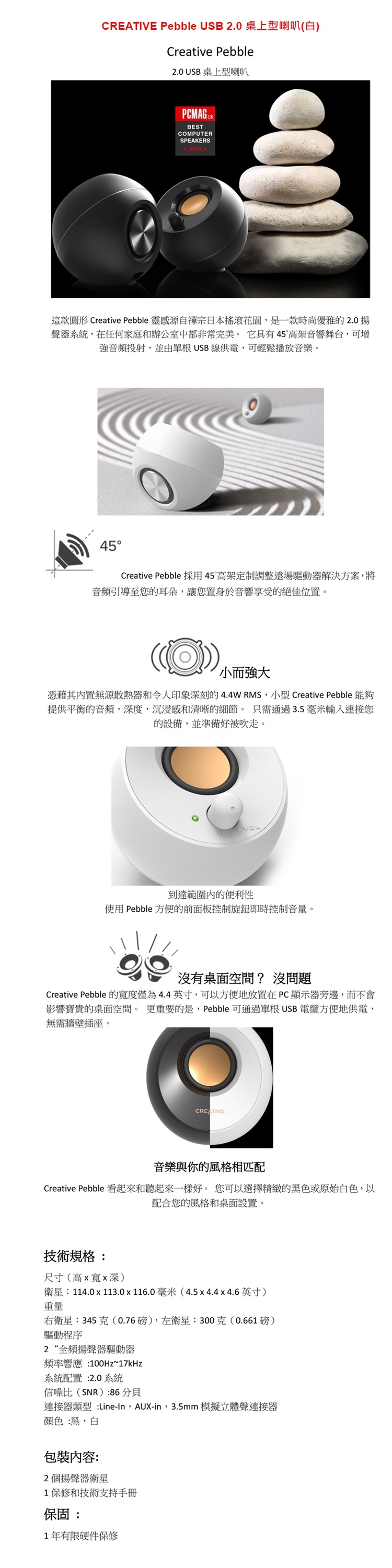 Creative Pebble 2.0 USB桌上型喇叭(白) 51MF1681AA001