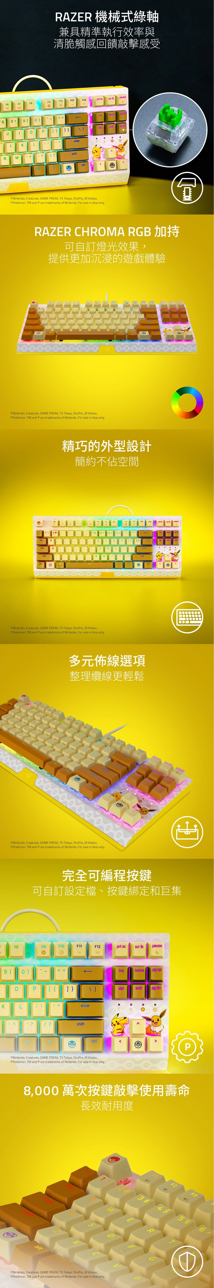 Razer 雷蛇 BlackWidow V3 TKL(綠軸) 黑寡婦蜘 英文鍵盤 寶可夢聯名款
