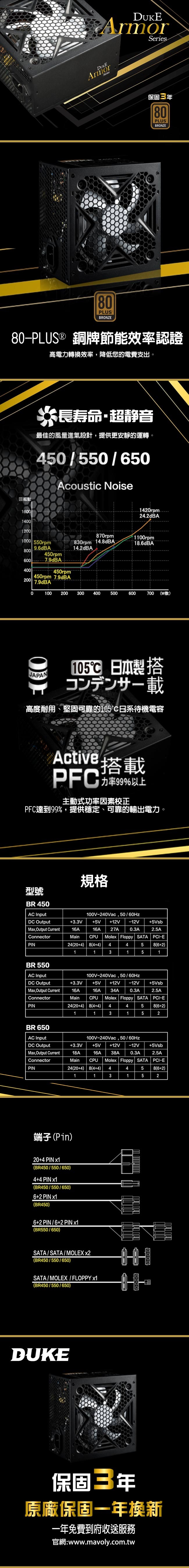 Mavoly 松聖 DUKE ARMOR 650 650W 銅牌電源供應器