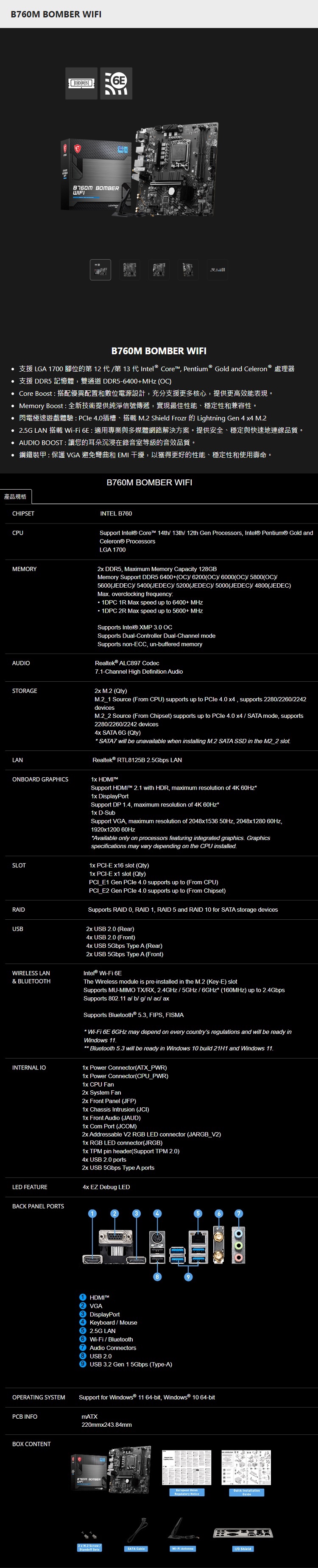 微星 MSI B760M BOMBER WIFI INTEL主機板