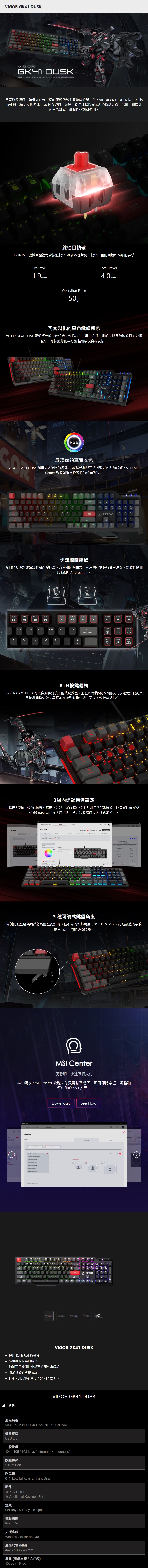 MSI 微星 VIGOR GK41 DUSK LR TC 電競鍵盤