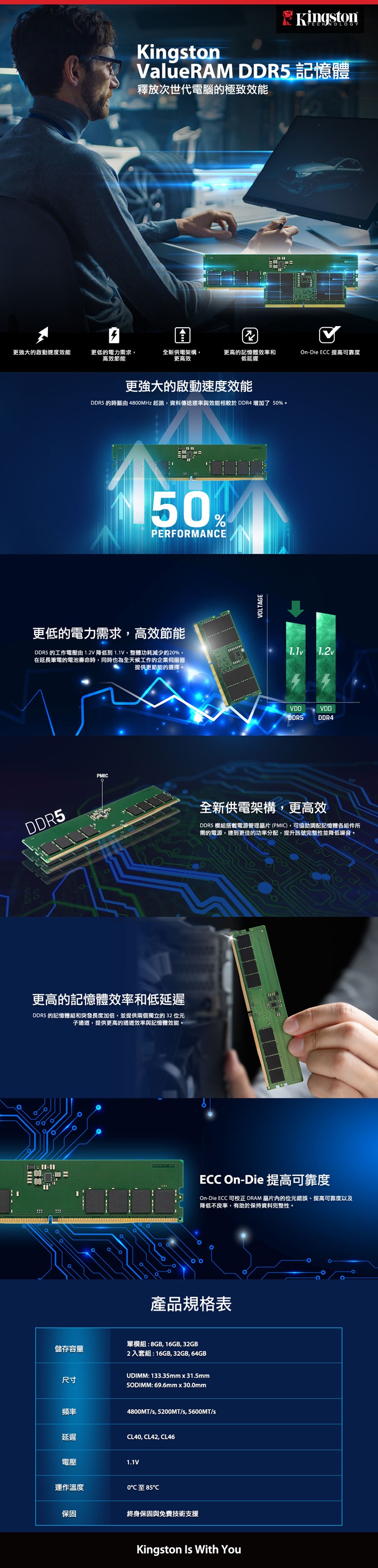 Kingston 金士頓 DDR5 5600 8GB 筆記型記憶體 KVR56S46BS6-8