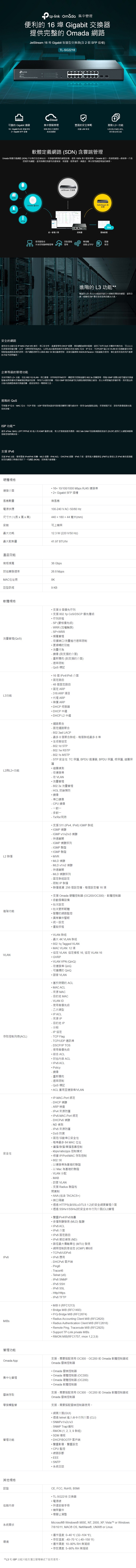- 全 Gigabit 連接埠: 16× gigabit RJ45 RJ45 連接埠和 2× gigabit SFP 插槽提供高速連線。