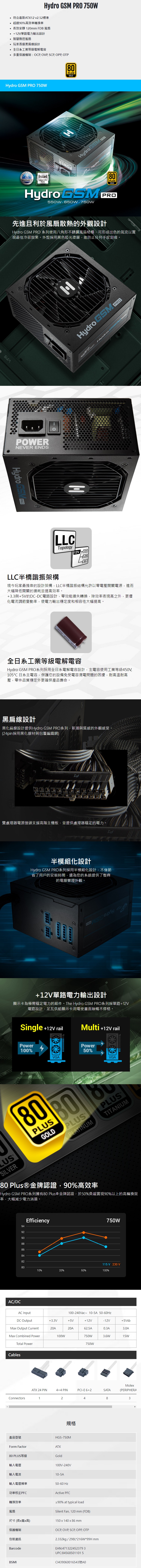 FSP 全漢 Hydro GSM PRO 750W 80PLUS金牌 電源供應器(HGS-750M)