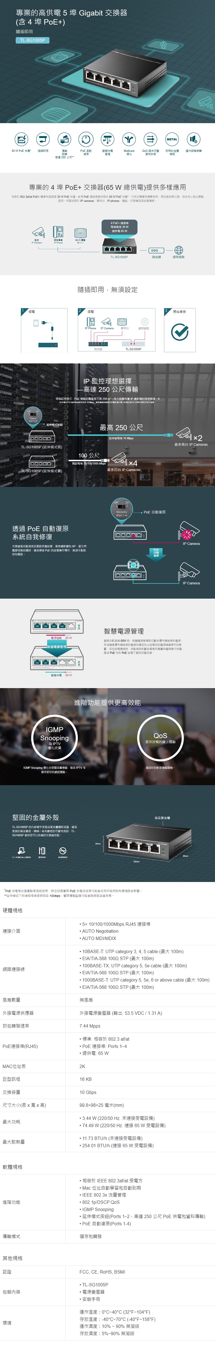 - 5× 10/100/1000 Mbps RJ45 連接埠