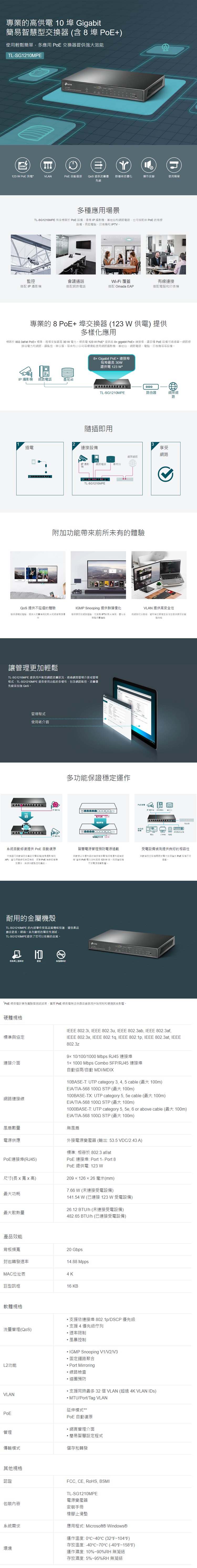 - 具備 8 個 802.3af/at PoE+ 連接埠,每埠最高提供 30 W,交換器可透過單一網路線同時傳輸資料和電力