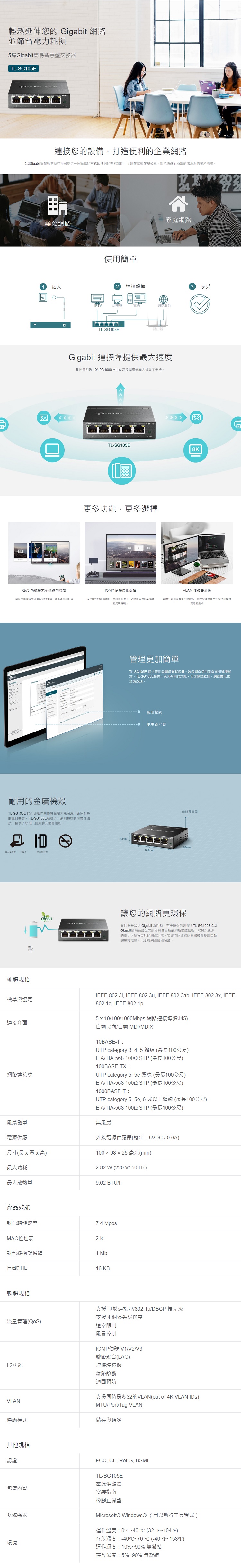 - 5 x 10/100/1000Mbps RJ45連接埠