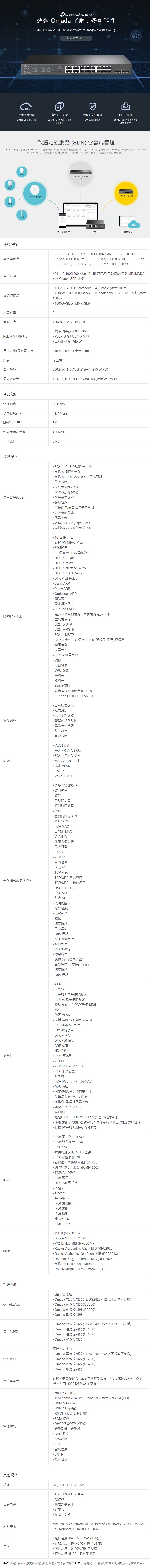 - 24× Gigabit 802.3af/at PoE+ 連接埠和 4× Gigabit SFP 插槽