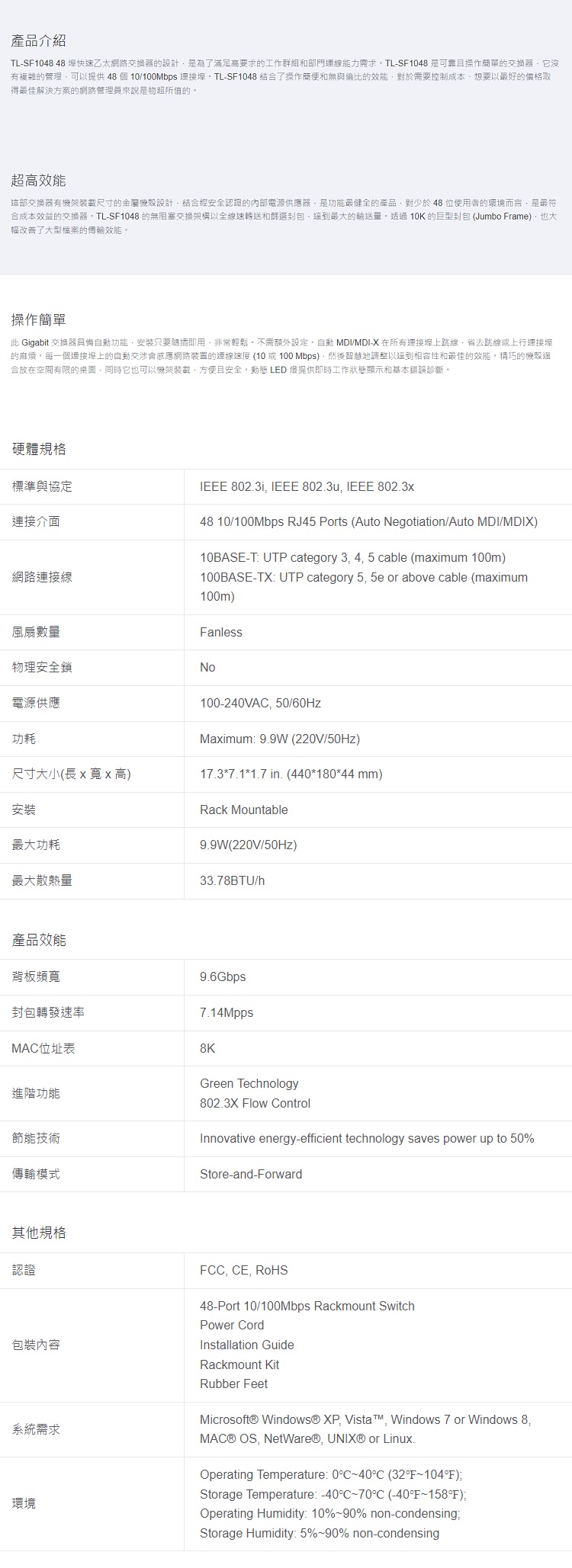 - 支援 MAC 位址自我學習和自動 MDI/MDIX
