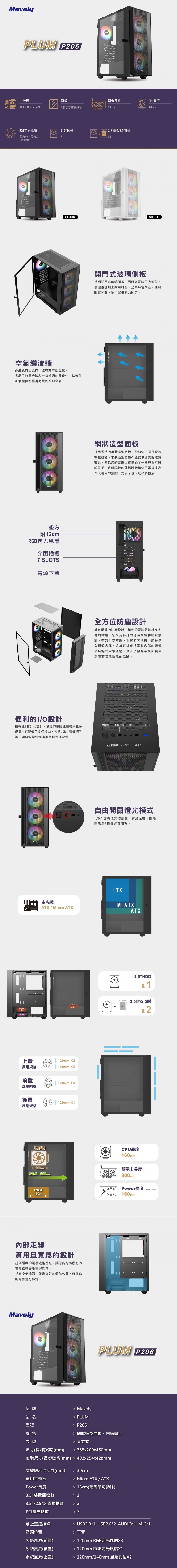 松聖 Mavoly PLUM P206 (黑)玻璃側掀 ATX機殼