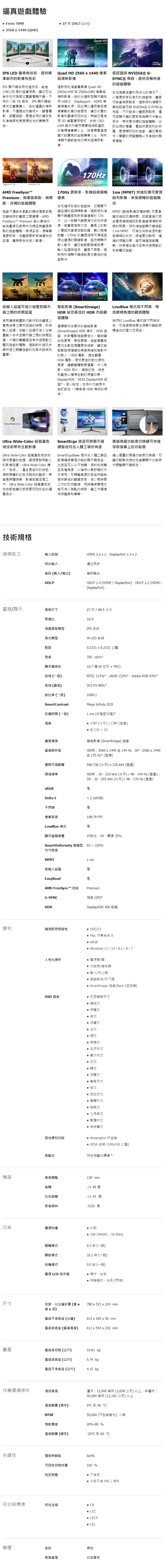 - 經認證與 NVIDIA® G-SYNC® 相容,提供流暢快速的遊戲體驗