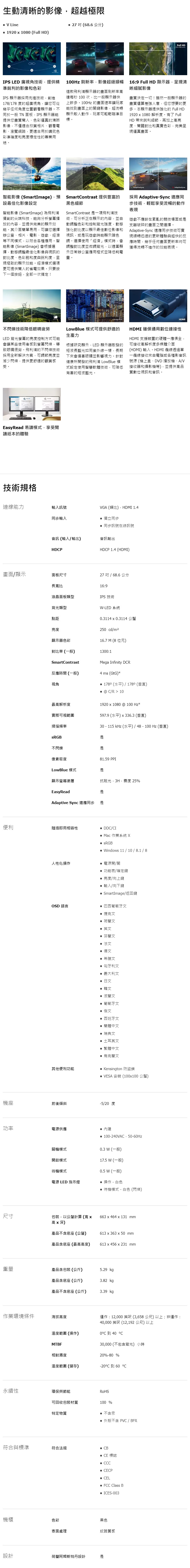 PHILIPS 飛利浦 27型 液晶顯示器 271V8B
