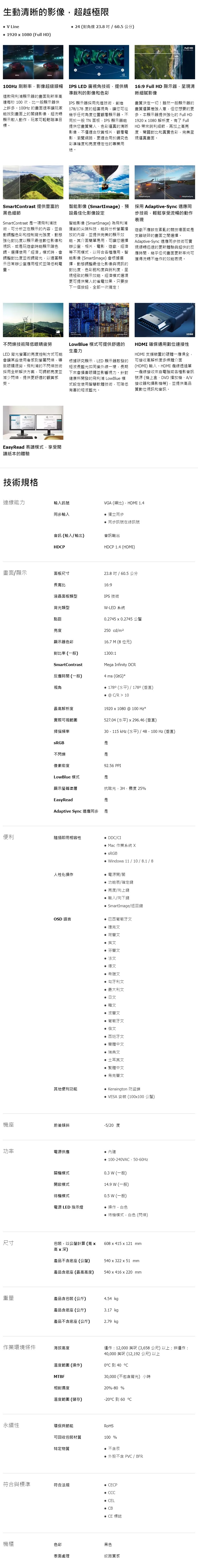 PHILIPS 飛利浦 24型 液晶顯示器 241V8B