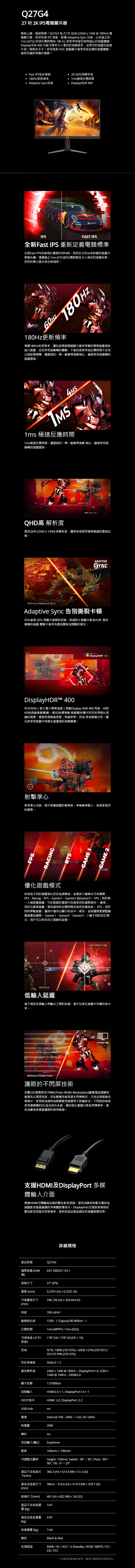 AOC 艾德蒙 27型 IPS 2K 電競螢幕 Q27G4