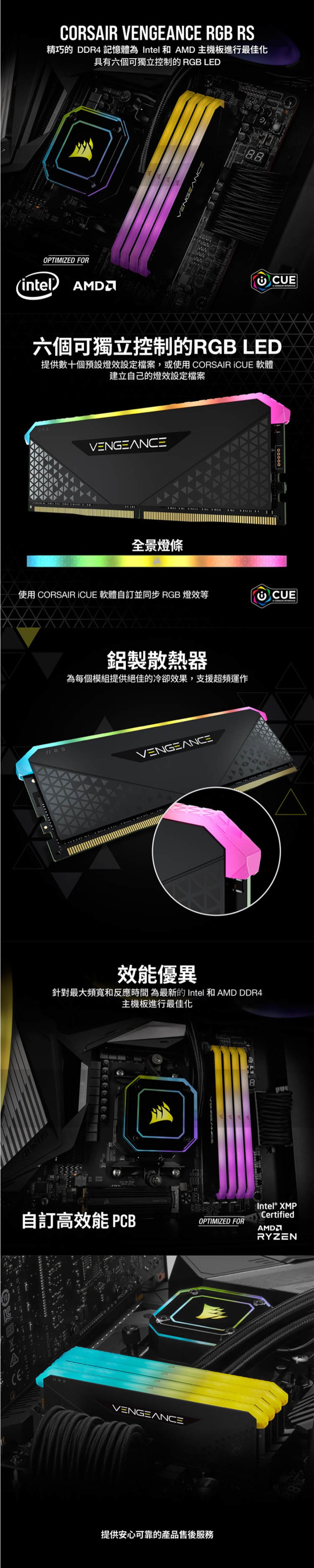 CORSAIR 海盜船 Vengeance 復仇者 RGB燈 RS DDR4 3600 32GB(16GBx2) 超頻雙通記憶體(黑) CMG32GX4M2D3600C18