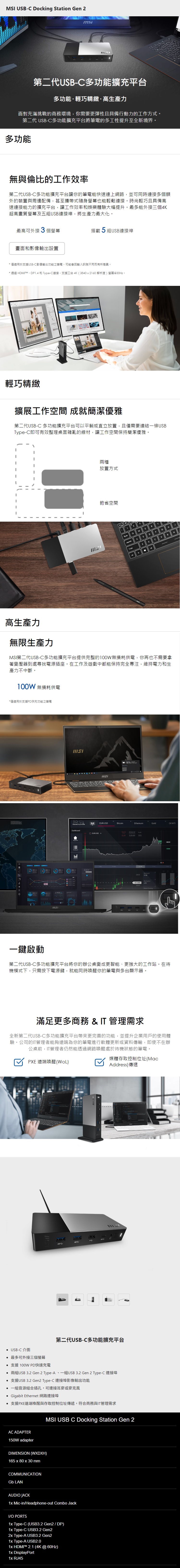 - 支援USB 3.2 Gen2 Type-C 連接埠影像輸出功能