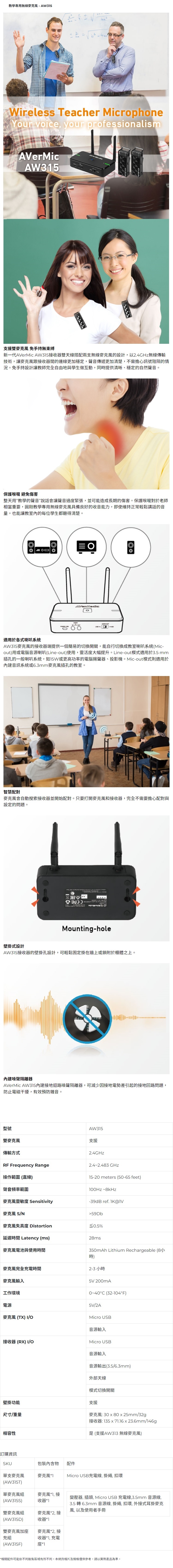 AVERMEDIA 圓剛 AVerMic AW315F 無線教學麥克風(雙麥克風加座充組)