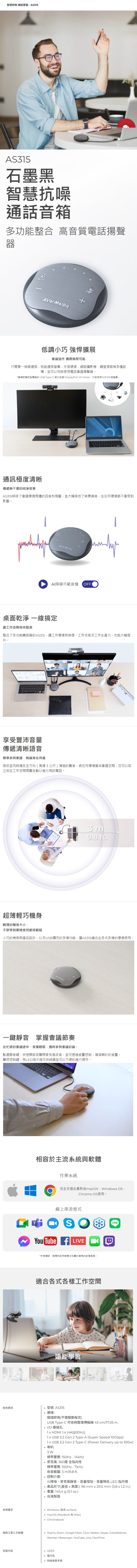 AVERMEDIA 圓剛 AS315 智慧抗噪通話音箱電話會議揚聲器(黑)