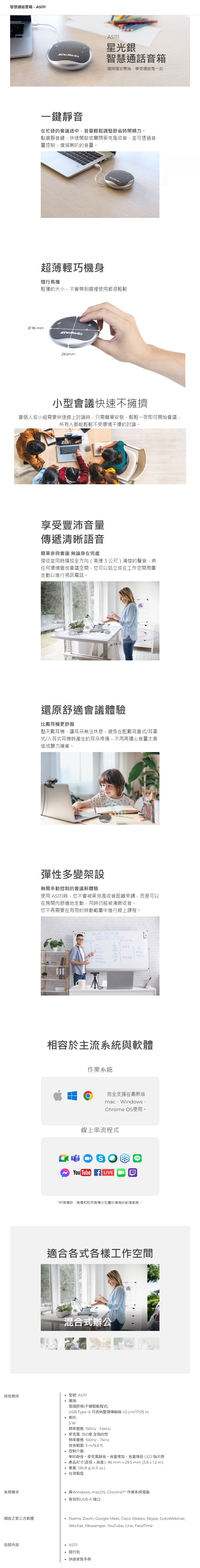 AVERMEDIA 圓剛 AS111 智慧通話音箱電話會議揚聲器(星光銀)
