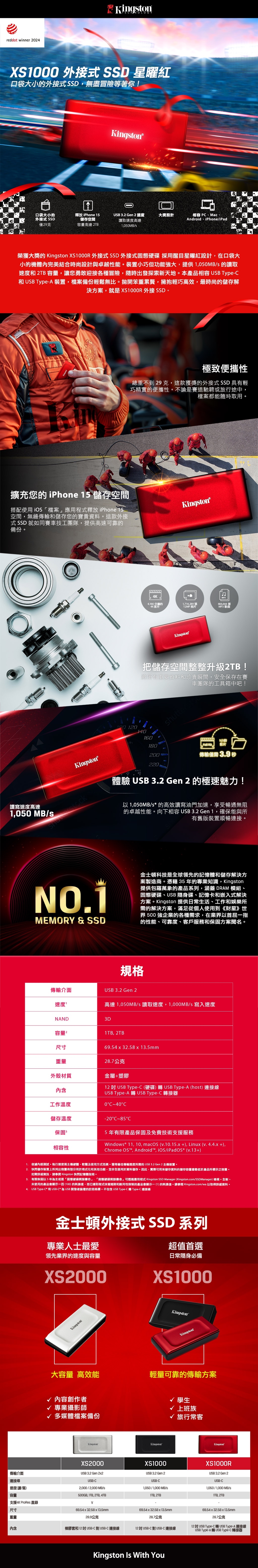 Kingston 金士頓 XS1000 2TB 外接式 行動固態硬碟(星曜紅) SXS1000R/2000GA