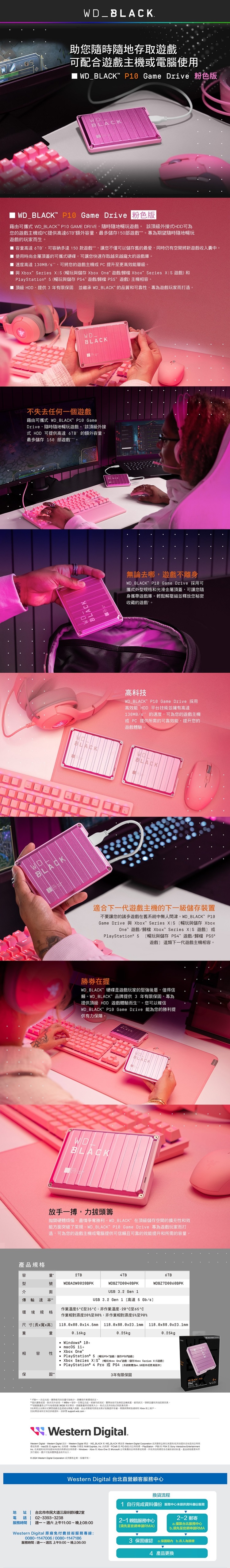 WD 黑標 P10 Game Drive 2TB(粉紅特仕版) 2.5吋行動硬碟 WDBA2W0020BPK-WES1